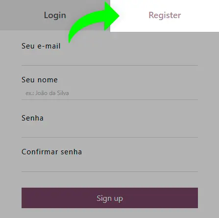 2. Assim que uma janela aparecer clique em "Register (Registrar)" e preencha com seu e-mail, nome e crie uma senha forte.