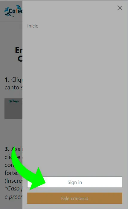 1. Clique nos 3 traços no canto superior direito da tela para abri o menu, assim que fizer isso selecione o botão "Sign In (Entrar)"