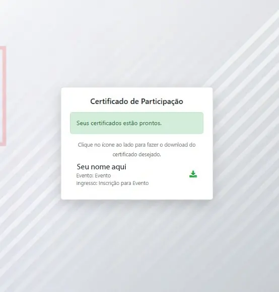 4. Pronto, seus certificados vão aparecer nesse campo e você poderá baixar clicando no ícone ao lado do seu nome